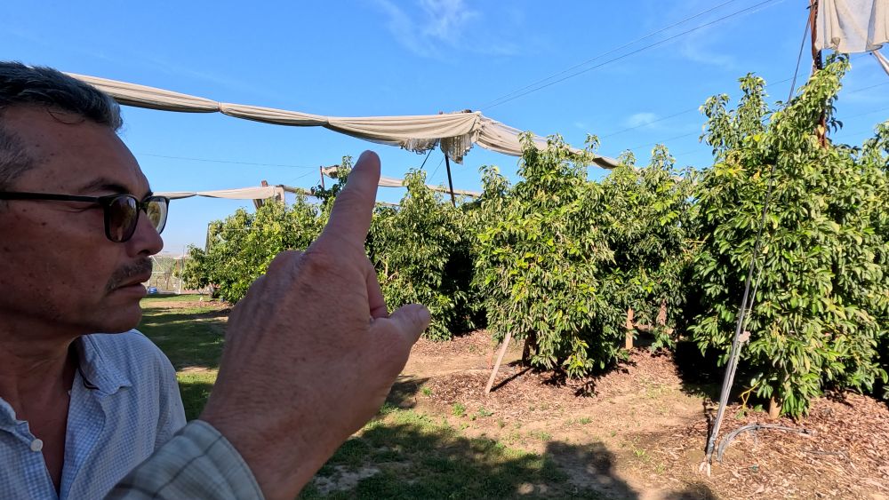 See how Tarcisio Ruiz is accomplishing temperature mitigation for acres of sensitive avocado trees using a canopy of shade cloth: