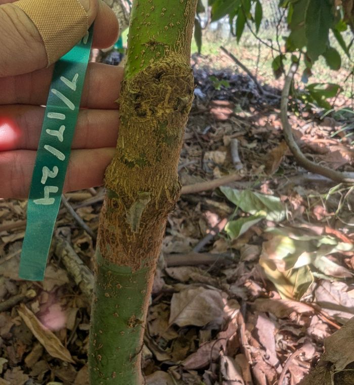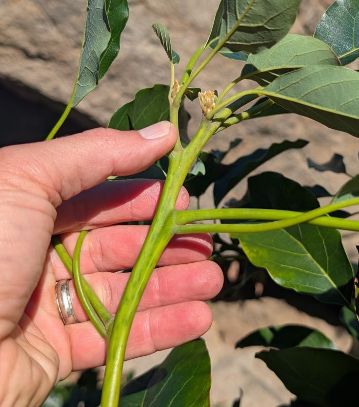One, around July and August is another period where good scions can often be found on an avocado tree because the branches that grew in spring have paused and “hardened off” such that they are similarly filled with latent energy.