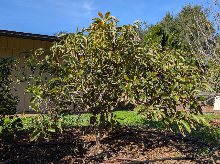 I took a piece of a branch from my neighbor’s XX3/Holiday avocado tree and spliced it onto the top of a little seedling in my yard. This was my first attempt at avocado grafting. And I might have succeeded if I had had this post to guide me in selecting better scion wood.