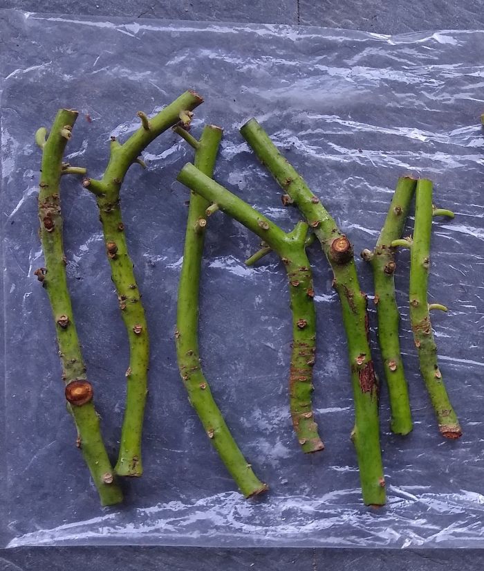 From the time of cutting or the time of collecting (from a friend or a scion exchange), you want to keep the scions in shade, cool, and protected from drying out.