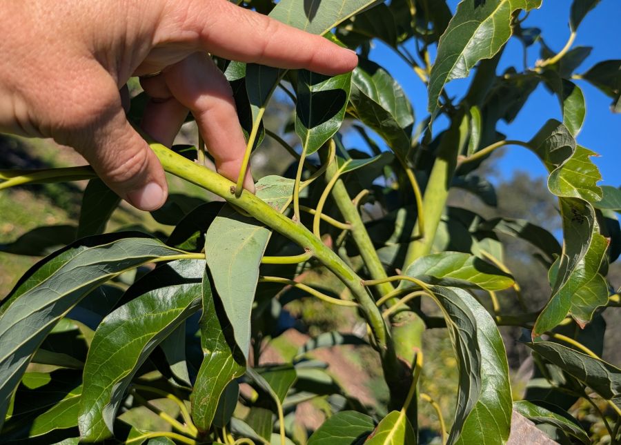 One, around July and August is another period where good scions can often be found on an avocado tree because the branches that grew in spring have paused and “hardened off” such that they are similarly filled with latent energy.