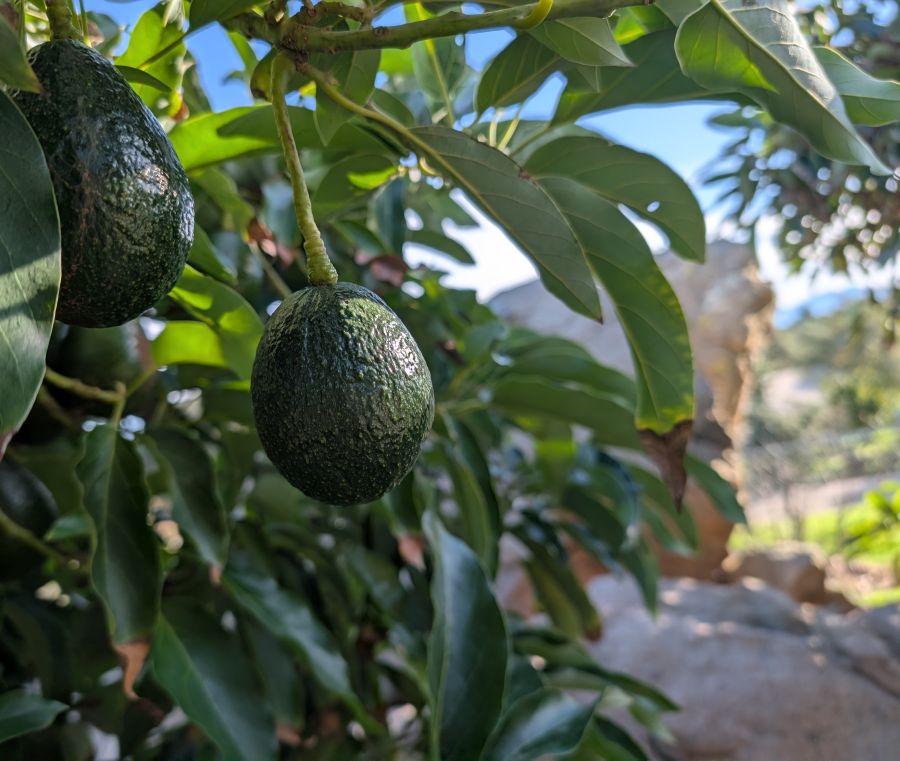 What is nice about these boulders is that they absorb and retain heat. This heat warms plants right next to the boulders throughout the night. I have noticed, for example, that B-type avocado trees make more fruit when planted next to the boulders.